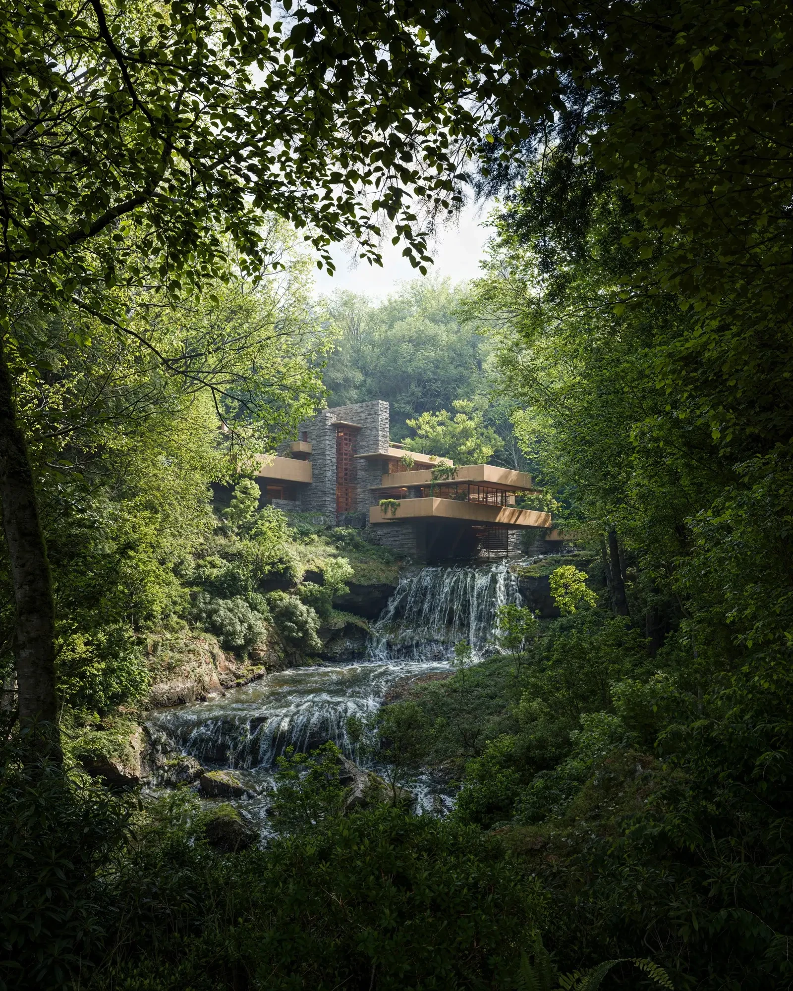 I’m proud to introduce a very special project, my full 3D recreation of the iconic and world famous Fallingwater, located in the Bear Run Nature Reserve, Pennsylvania, USA. A personal passion and endeavour of mine over quite a few years, this project represents my love for what I am able to call ‘work’, my ambition to keep learning, something I believe as creatives we can lose sight of sometimes in the day to day grind. It represents my journey of growth and learning in Arch Viz since 2018, and my pursuit to keep pushing forward and challenging myself.