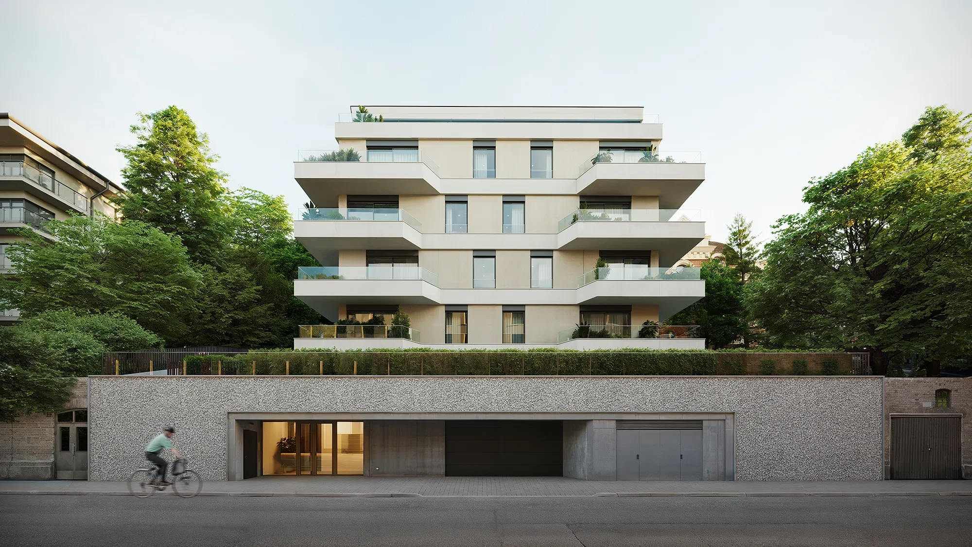 This residential building in Prague is designed in a modern architectural style that combines functionality and aesthetics. The use of light materials, such as plaster, gives the structure a sense of visual lightness and elegance. Clean lines, simple shapes, and large windows create a spacious and contemporary appearance, providing natural light to the interior spaces and ensuring a comfortable living environment in an urban setting. The project seamlessly blends into Prague's historic surroundings, striking a balance between modern architectural trends and the city's traditional character. Neutral tones and understated facades allow the building to harmonize with the surrounding structures, maintaining the rhythm of the street. This project exemplifies the successful integration of a modern residential building into the cultural context of urban development.
